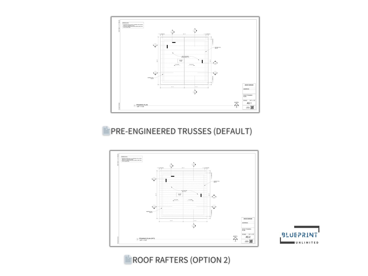Ready-to-use garage blueprints, designed to meet the latest building code and construction standards. Crafted by experienced architects, these drawings are tailored for professional builders.